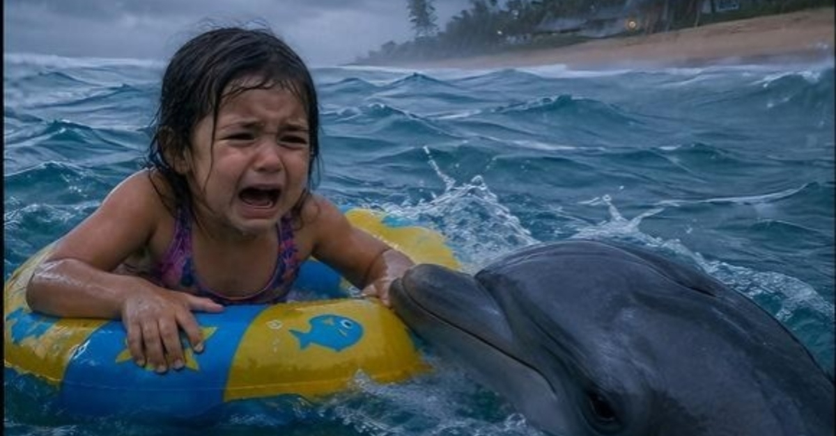 Maya froze, her breath catching in her chest as a large shadow moved beneath the surface. She expected the worst, but instead of a threat, a smooth, gray snout emerged from the water. It was a bottlenose dolphin, its eye calm and remarkably intelligent as it looked up at the trembling girl. With a gentle but firm motion, the dolphin swam behind the raft and gave it a soft nudge. Maya gasped, feeling the float lurch forward toward the distant coastline. The dolphin didn’t stop there; it positioned its powerful body against the back of the inflatable, kicking its tail in a steady rhythm that began to counteract the pull of the tide.