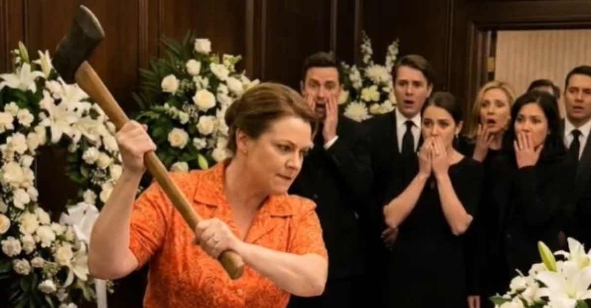 The air in the funeral parlor was thick with the scent of lilies and the stifled sobs of the bereaved, a heavy silence pressing down on the rows of mourners. In the center of the room sat a pristine white casket, polished to a mirror shine and representing the finality of a life cut short. The peace was not broken by a prayer or a eulogy, but by the rhythmic, heavy thud of heels against the carpeted floor. A woman in a vibrant orange dress, her face a mask of frantic determination, marched toward the altar. Before anyone could intervene, she swung a heavy wood-splitting axe high above her head.