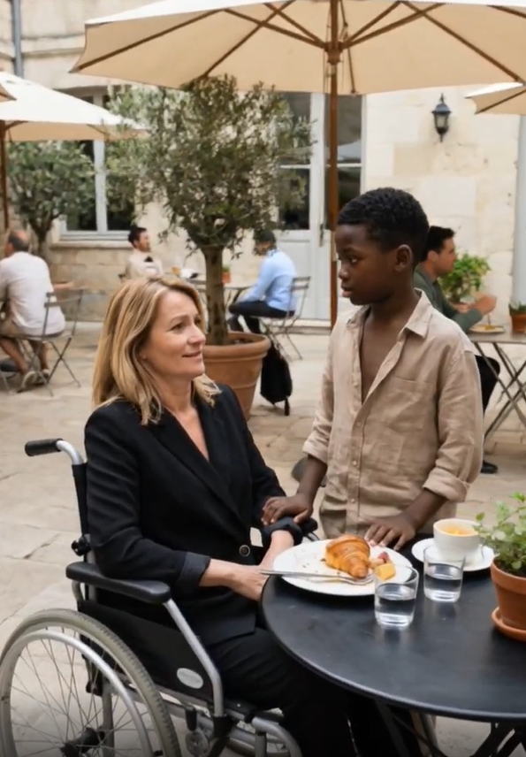 The disruption came not from the bustling waiters, but from a small boy with unruly chestnut hair and eyes that seemed far too steady for his age. He approached her table with a confidence that felt out of place in a child, stopping just inches from her silver-rimmed wheels. He didn’t ask for change or look at her with the practiced pity she had grown to loathe. Instead, he pointed a small, dirty finger at her untouched meal. “I am very hungry,” he said, his voice a calm ripple in the café’s noise. “If you give me that food, I will make you walk again.”