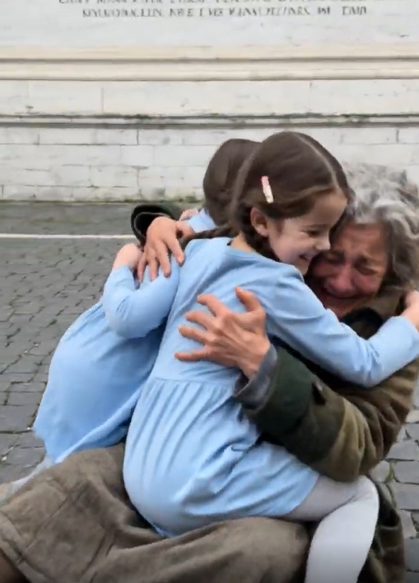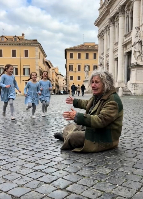 Across the stones, two small girls in matching cerulean blue dresses broke away from their parents, their laughter turning into high-pitched squeals of instinctual recognition. They didn’t know the woman, yet they ran toward her as if drawn by a magnetic pull they were too young to name. The woman pulled them into a desperate, tearful embrace, her face buried in their hair as muffled cries of “Oh my God” echoed off the towering cathedral walls. It was a sound of agonizing relief, the kind of noise one makes when a decades-old wound finally begins to close. A few yards away, the children’s parents stood paralyzed, caught between the instinct to protect their daughters and the haunting realization that they were witnessing a miracle they didn’t yet understand.