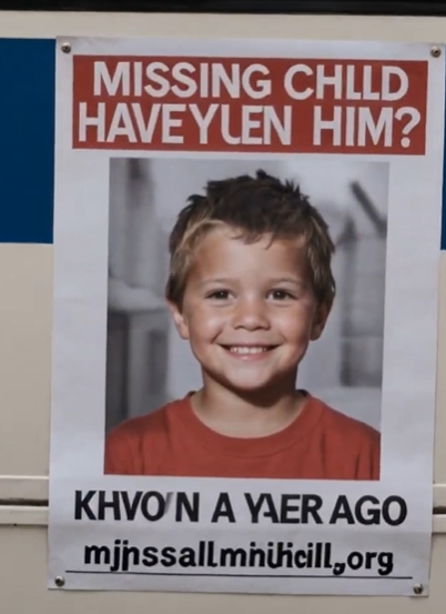 The stillness of the evening was suddenly broken by the rhythmic hiss of a city bus pulling to the curb. As the heavy vehicle hissed to a stop, it momentarily blocked the view between the two sidewalks. On the side of the bus, plastered over a window, was a faded “Missing Child” poster. The ink was weathered by rain and sun, but the face was unmistakable. It featured a bright-eyed, smiling boy in a clean polo shirt—the very same boy now sitting on the cardboard box across the street. The poster dated the disappearance to exactly one year ago today. Both boys looked up at the same time, their eyes catching the image before the bus roared back into motion, leaving a cloud of exhaust in its wake.