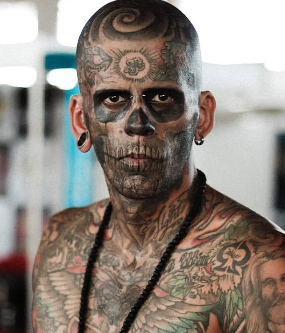 His love affair with tattoos began early—at just 13, inspired by rock icons like Nirvana and Guns N’ Roses, he got his first piece of ink. Over the years, his body art became a bold statement of rebellion and devotion to music, eventually earning him the title of Brazil’s most tattooed man at the Santa Rosa International Tattoo Expo. But in 2023, after embracing the evangelical faith, Leandro admitted that he no longer felt at ease with his heavily inked appearance, describing it as being a “circus attraction.”