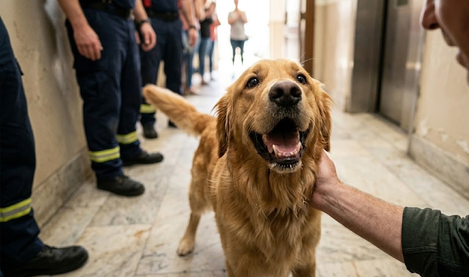 Minutes later, the fire department pried the doors open to find Brian sitting on the floor, sweating and shaking but grinning ear to ear. He climbed out into the hallway and rushed down the stairs to the lobby, where a small crowd had gathered around a very confused, very waggy retriever. The dog lunged at him the moment he appeared, licking his face with a frantic energy that mirrored the chaos of the last ten minutes. Brian held onto the dog’s scruff, breathing in the scent of fur and outside air, knowing that for once, the machine had lost and the underdog had won.