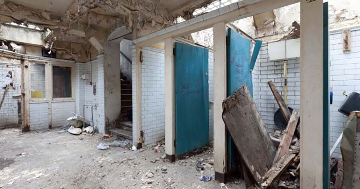 More than 5 years ago this ordinary public toilet was collapsed. Then, homeless people
